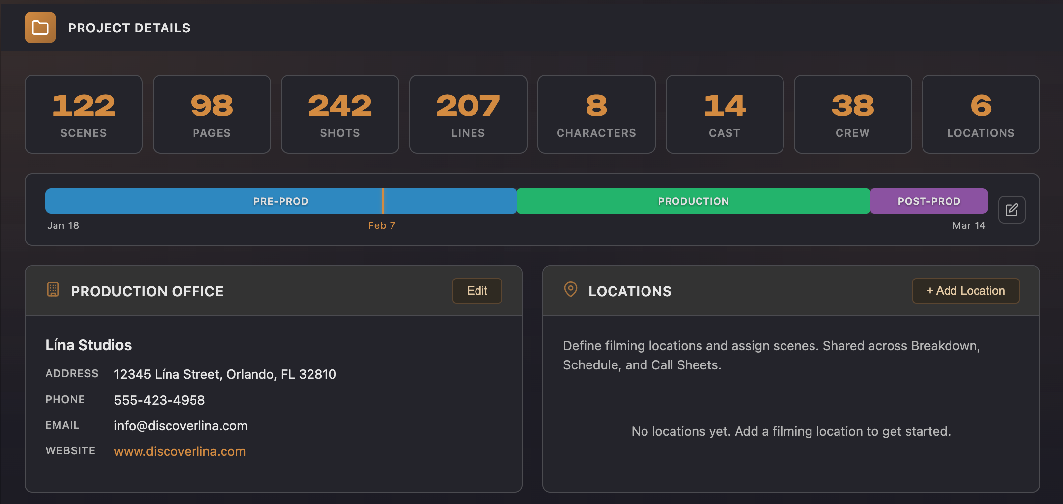 From screenplay to call sheet, Lína is the all-in-one production management tool built for modern filmmakers.